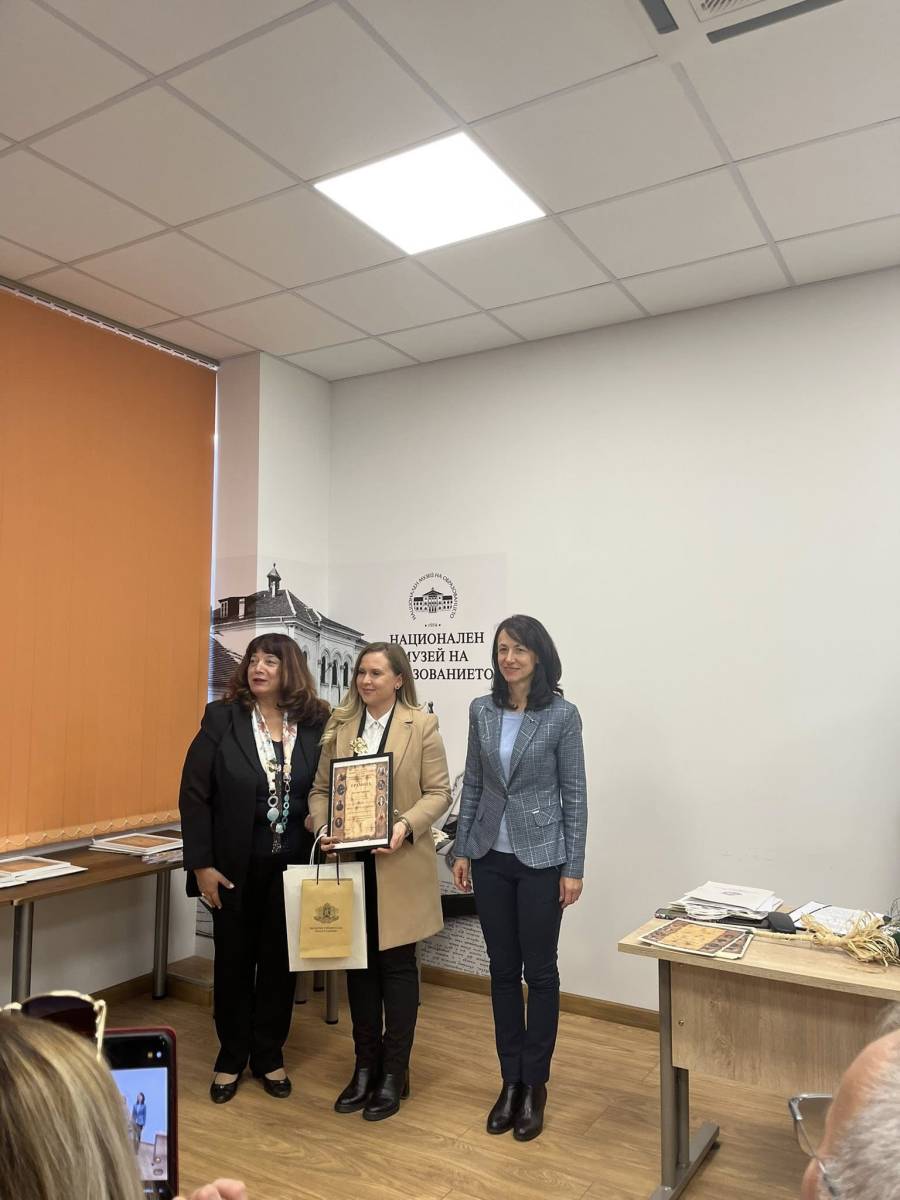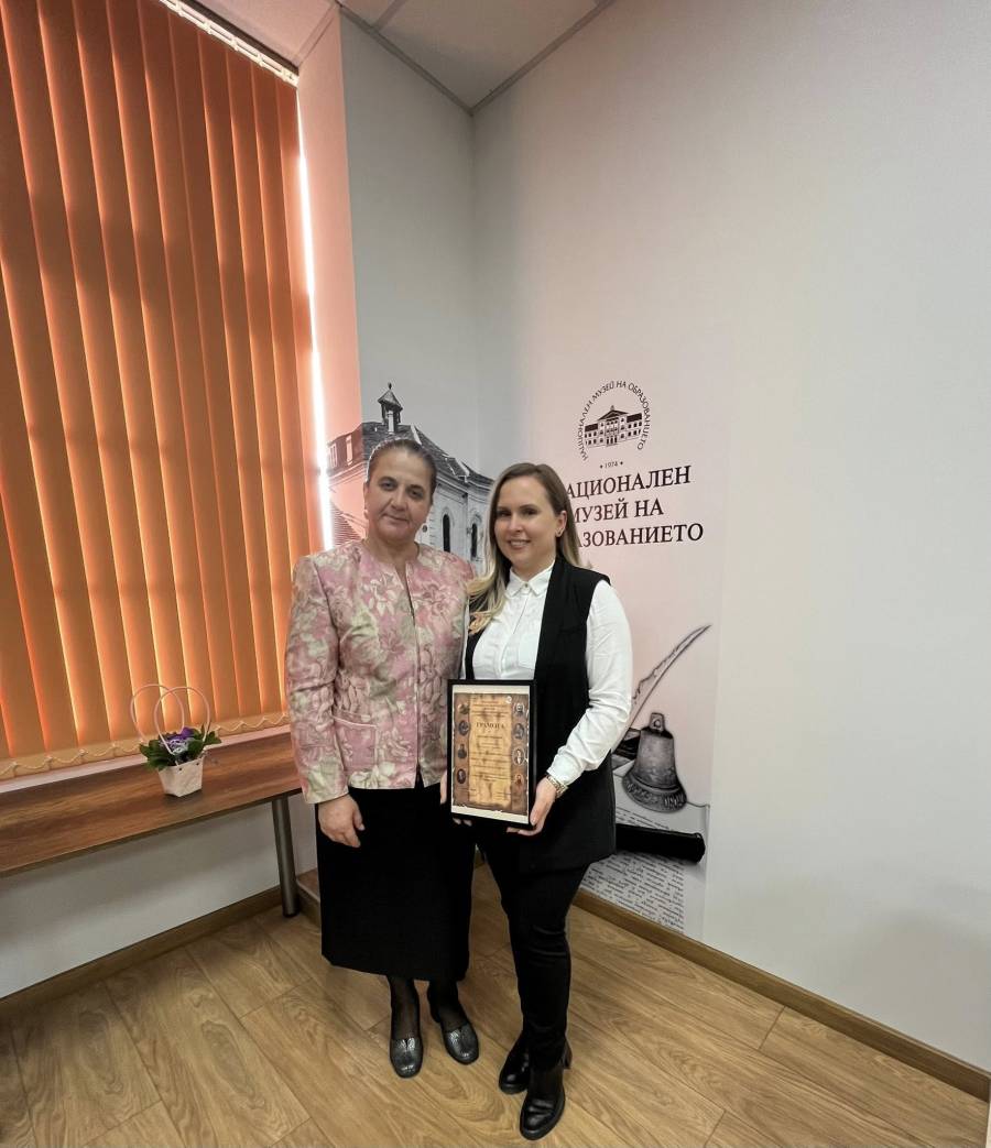 Днес старши учител по музика г-жа Цветина Маринова получи отличие “ Специална награда “ в направление “ Изкуство и спорт” в Регионален конкурс “ Учител- будител на бъдещето” организиран от СБУ и РУО Габрово ! Целият екип на ДГ ”Пролет” и честити тази престижна награда, която тя заслужено получи, за професионализма, отдадеността, новаторството и обичта към децата!