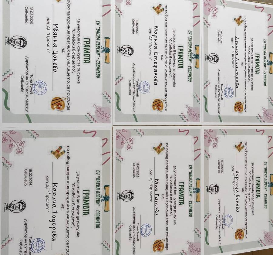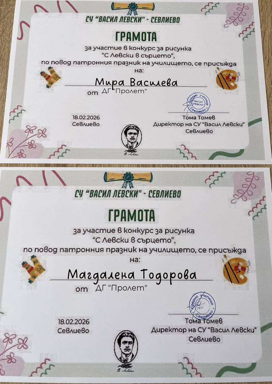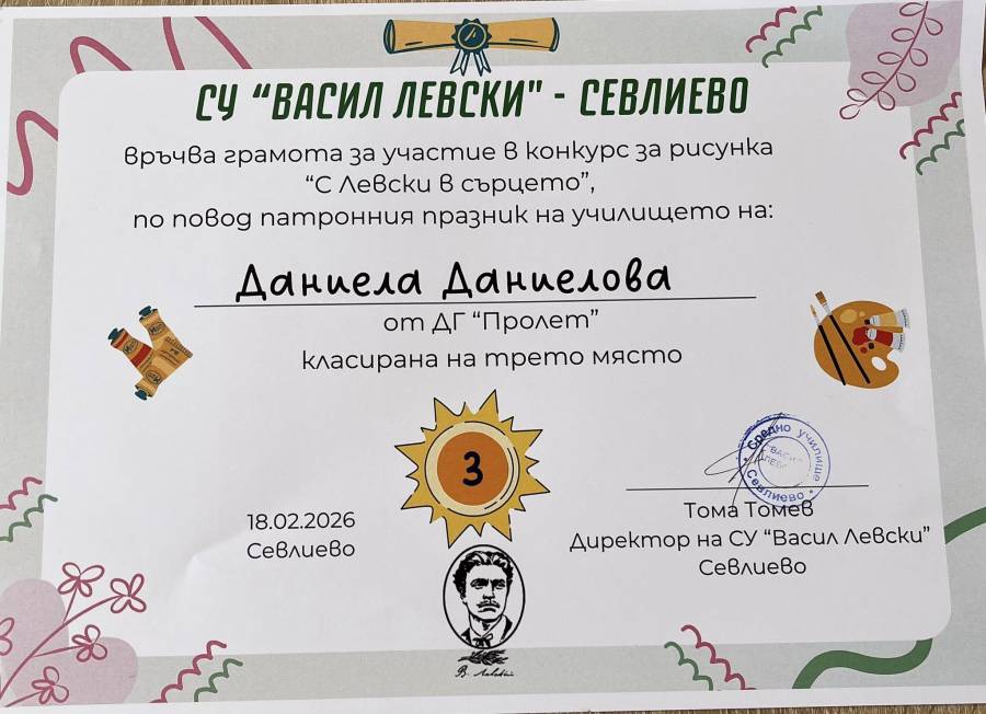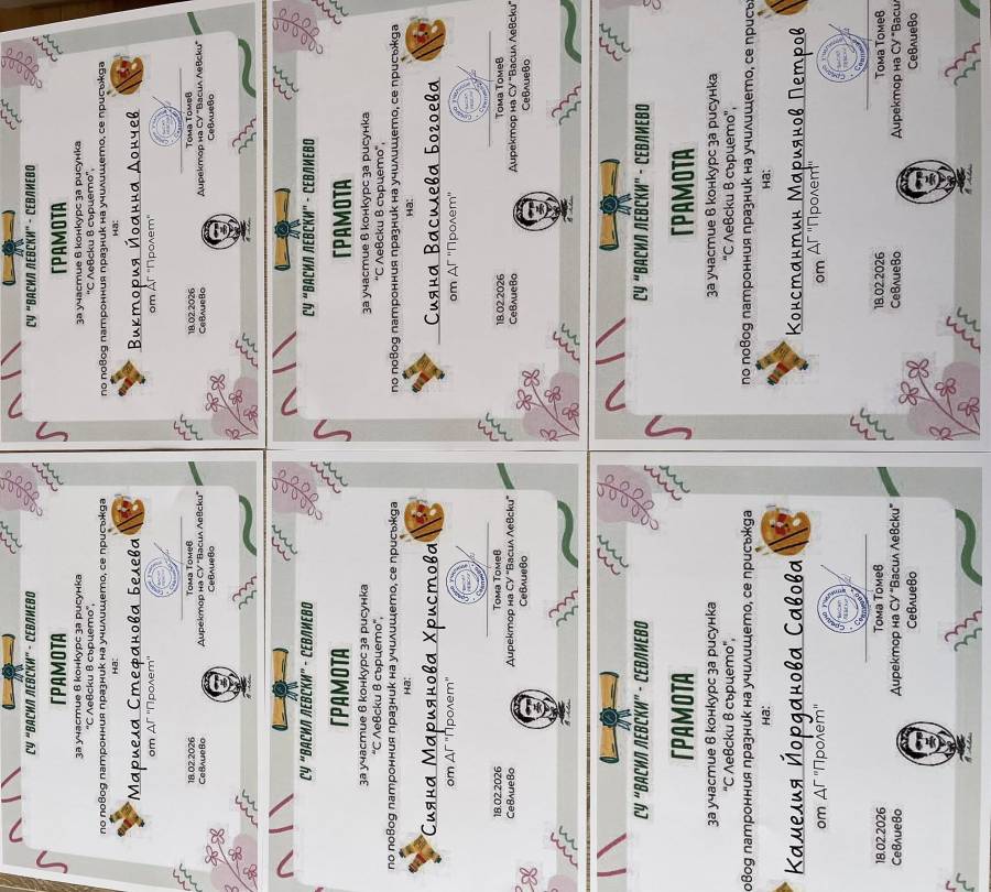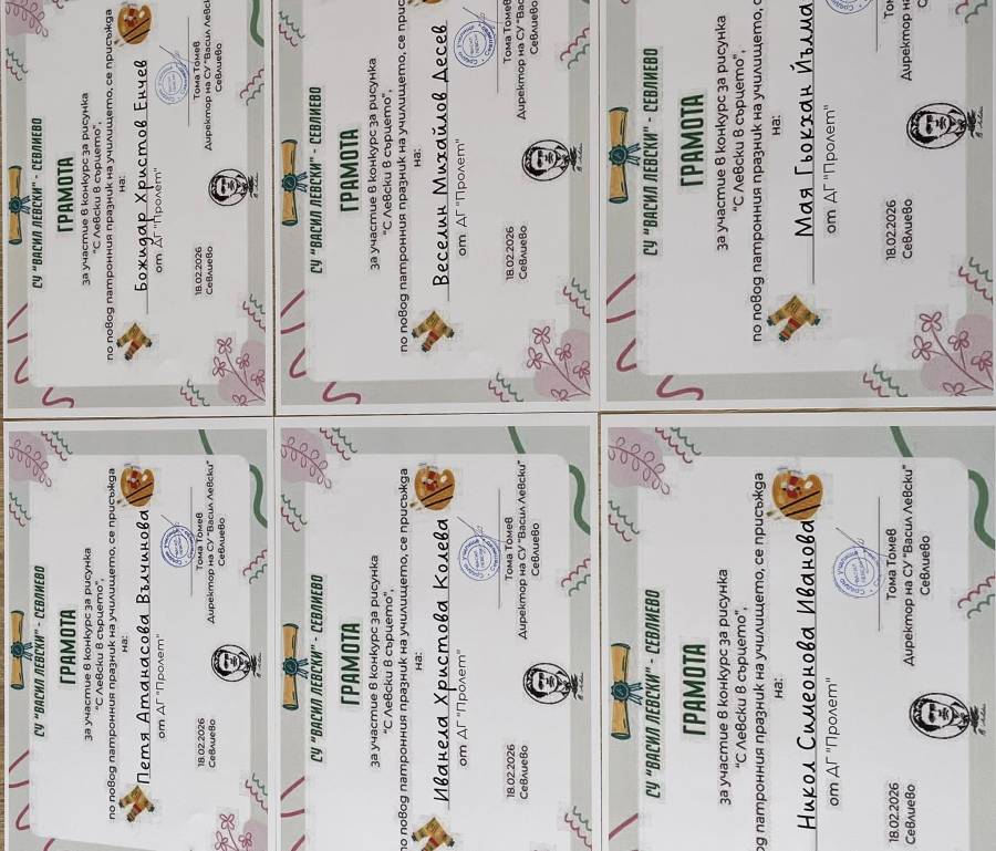 Участието на нашите деца в конкурса на СУ”Васил Левски” “С Левски в сърцето”.