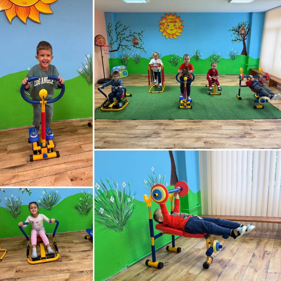 Нашите малки спортисти вече тренират на новите фитнес уреди по НП „Хубаво е в детската градина“. Проектът „Клуб Здраве“ вдъхновява децата да се движат, да спортуват и да растат щастливи!