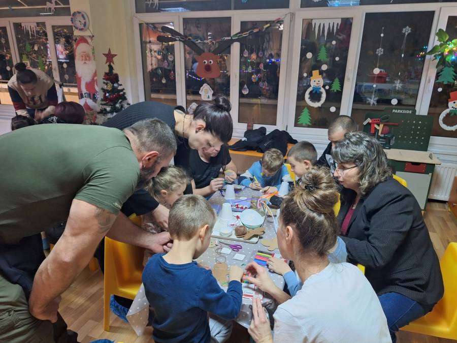 Децата с много старание и настроение изработиха джинджифилови човечета от картон, оцветиха красиви коледни фигурки от гипс и сътвориха симпатичен снежен човек от чаша – всяко изделие носи частица от семейната топлина и магията на момента.