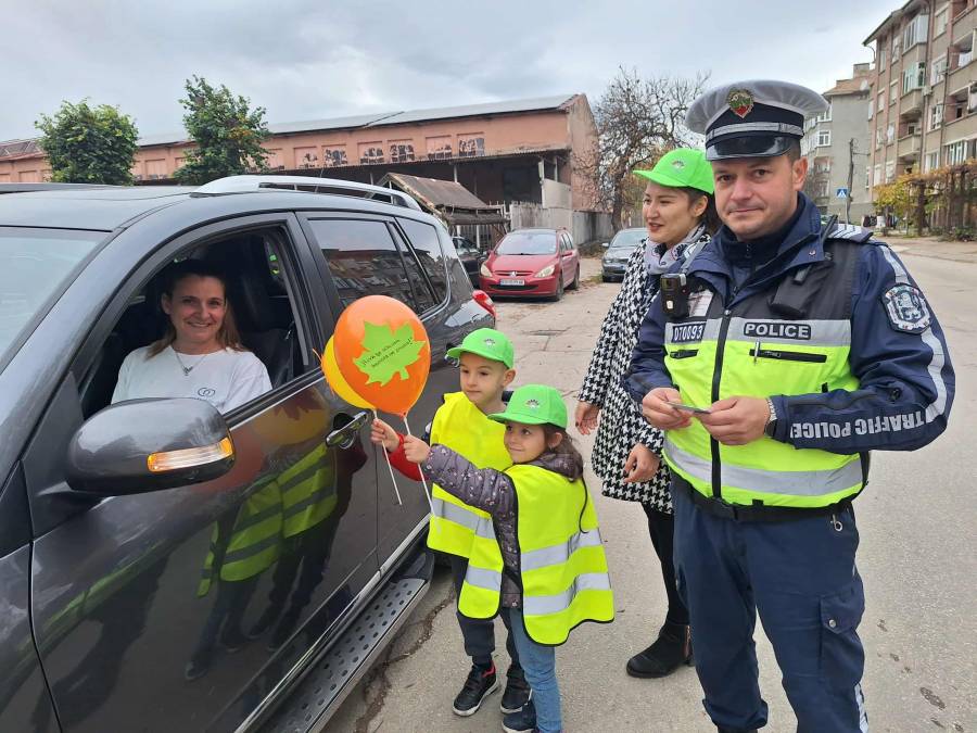 С усмивка и много старание всяко дете подари балон с есенно листо, на което беше написано послание към шофьорите – защото безопасността на децата е винаги на първо място и никога не трябва да се забравя!